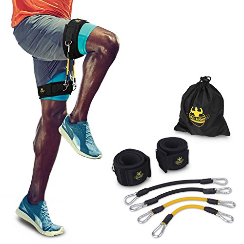 Grofitness saltando velocidad formación. Set Ejercicio Máquina fijación cintura cinturón bandas de resistencia y tobillera con bolsa, negro por Grofitness.